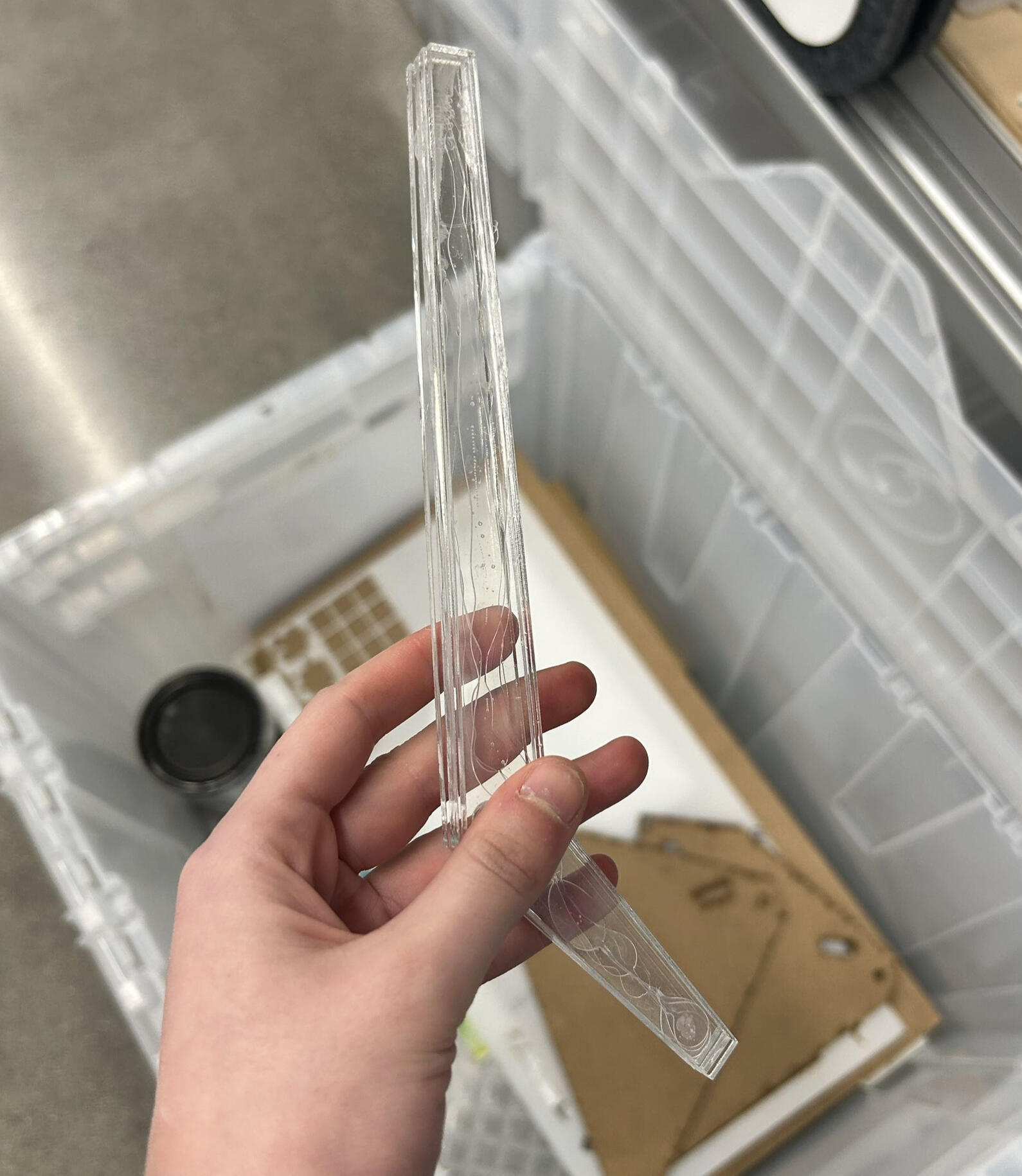 Our assignment required that we exhibit an exploded view created using SolidWorks in our final video, so I ported the files from Onshape into SolidWorks by saving each part as a SolidWorks part file, then assembled them in an assembly file, adding bolts and nuts using the SolidWorks toolbox. After finalizing the design (showcased above), I laser cut the final side panels out of MDF because that had worked well for previous prototypes. I used the trigger from the second prototype which had been laser cut out of acrylic and glued together, because it worked perfectly and didn't need any updates. We 3D printed the handles on a Bambu Lab printer, which allowed for minimal imperfections and a smooth finish.