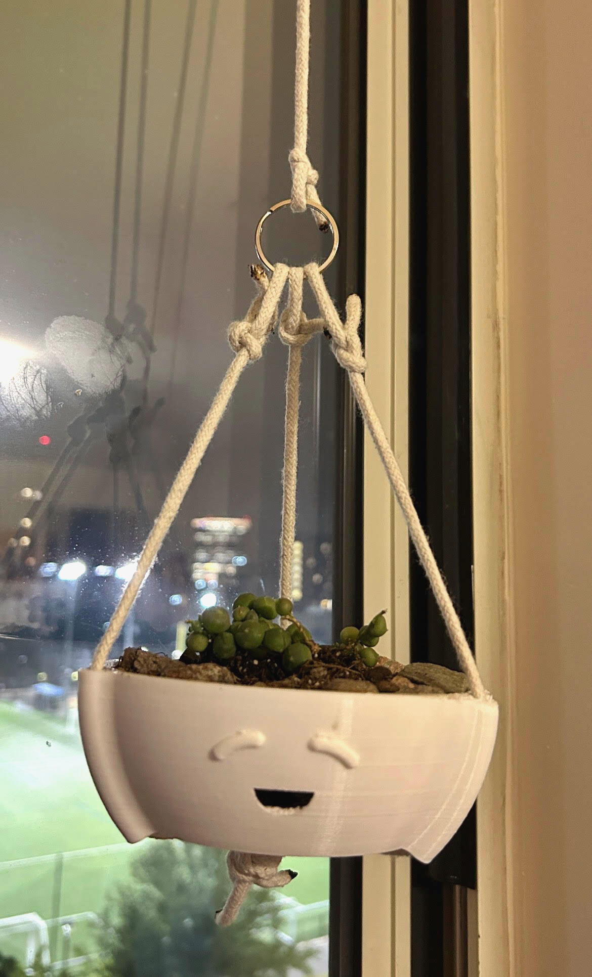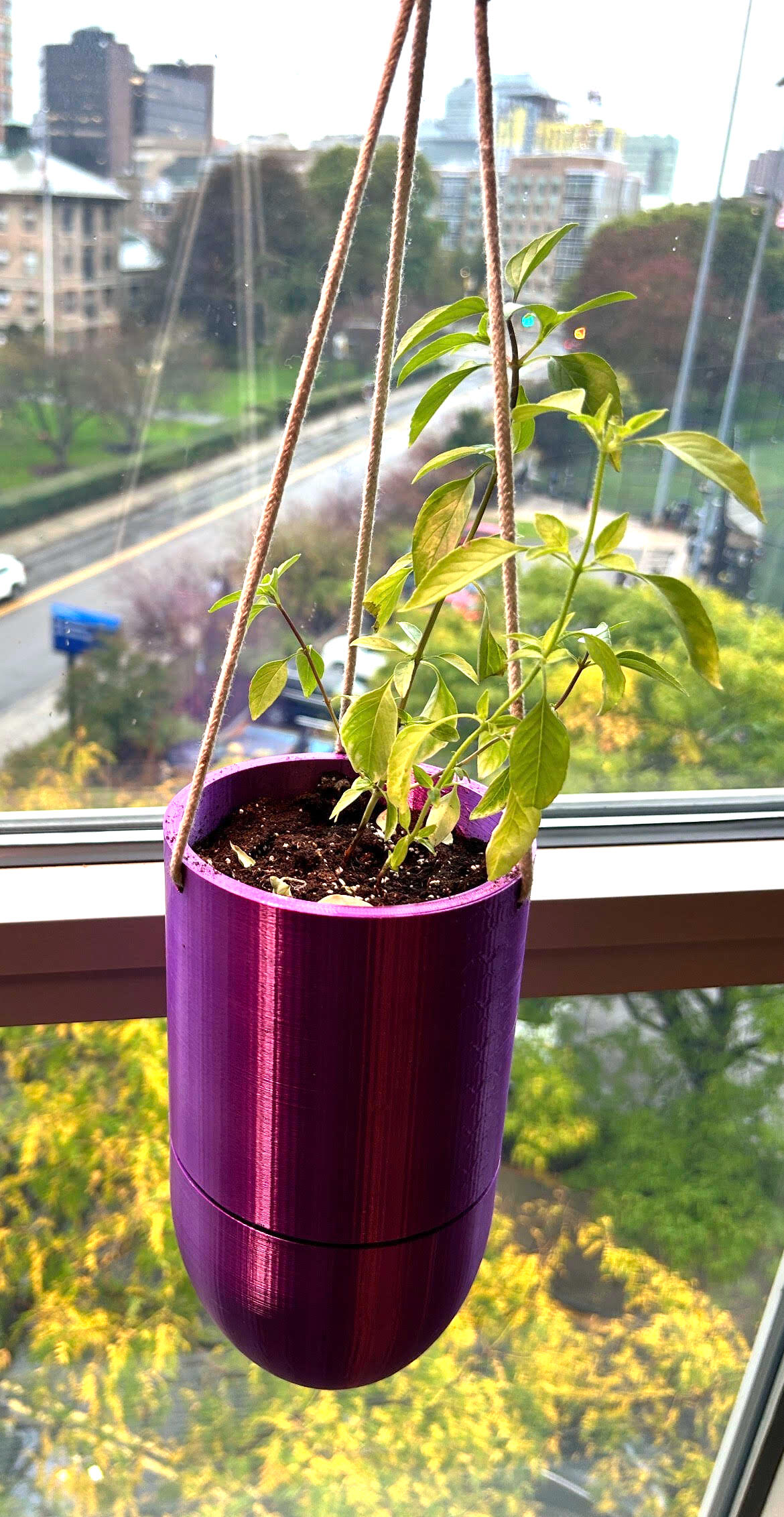 The initial motivation behind this project was personal. As a college student moving into a suite with a kitchen, I was excited at the idea of adding fresh herbs to my food. However, with the rising costs of living, I was debating going without seasonings on any of my food. That is when I stumbled across herb seed packets at my local hardware store, and decided to just grow my own.In a small apartment, space is a challenge. With no lack of window space, but a complete lack of windowsill space, hanging planters were sounding like the best choice, until I realized that most herbs need to be potted in a planter that can drain. Nearly all planters on todays market don't have any way to drain water out of them without the water just ending up on the floor: hence I designed my own.