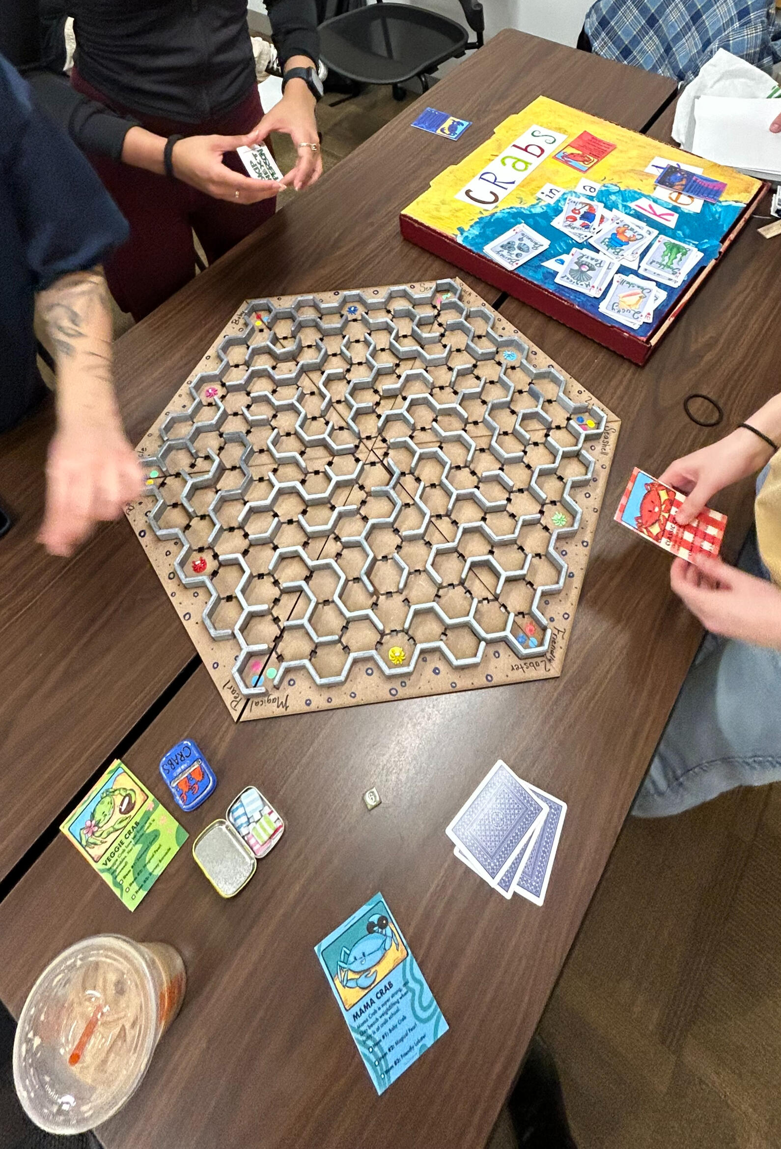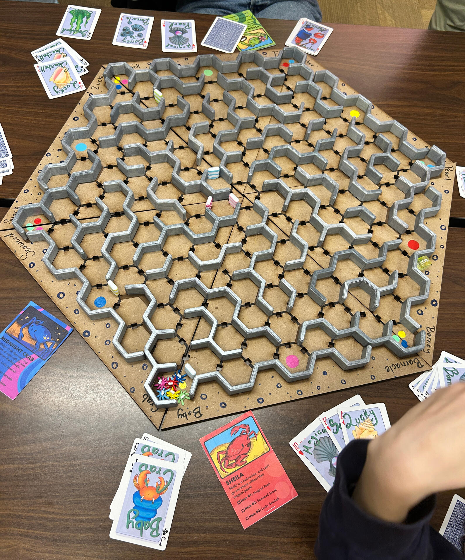 A labyrinth and strategy based board game in which players play as crabs racing to collect things they care about before escaping a metal bucket.