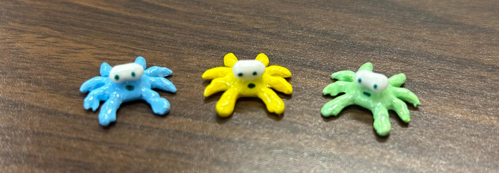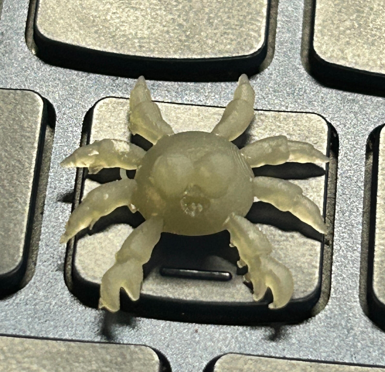 The removing of the supports from the finished print was easily one of the most physically difficult parts of this project. The supports for the prints were about the same diameter as the legs of the crabs, so it was extremely difficult to not accidentally snap the legs or arms of the crabs as the supports were being removed.While several crabs were lost in the process, we did eventually get the full six crabs finished and ready for painting. The painting was done with acrylic, and then finished with clear nail polish to prevent scratching.